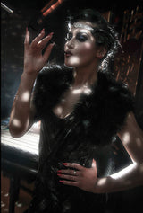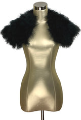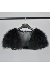 Our Parisian Ostrich Shrug exudes pure Hollywood glamour. Crafted from the finest hand-selected ostrich feathers and meticulously stitched onto a satin base, it drapes effortlessly over the shoulders for a dramatic, feather-light finish. Discreet elastic satin loops secure comfortably beneath the arms.