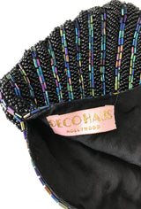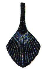 1920's Hand Beaded Deco Fan Wristlet Evening Purse - Black Aurora
