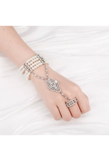 Gatsby Pearl Flapper Rhinestone Vintage 1920s Ring Bracelet - Silver Pearl