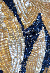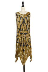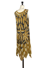 Our Viceroy Evening Gown is constructed on golden nylon mesh with luxurious glamour gold and jet black sequins overall. With a classic Art Deco design, the gown goes on over the head with a gorgeous handkerchief hem.