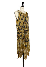 1920s Beaded Flapper Fringe Party Evening Dress- The Viceroy - Black Gold