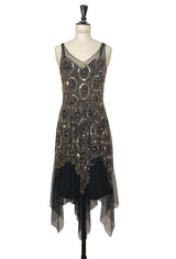1920's Beaded Handkerchief Gatsby Dress - The Deco Dot - Black Gold