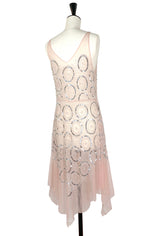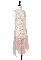 1920's Beaded Handkerchief Gatsby Overlay Dress - The Deco Dot - Vintage Pink