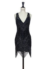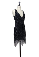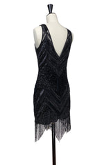 1920's Gatsby Party Dress - The Deco Chevron - Jet Black