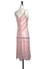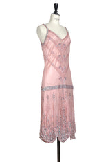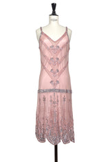 1920's Luxury Vintage Gatsby Beaded Slip Dress - The Fontaine - Deco Pink