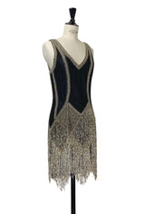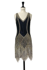 The Louise Brooks Celebrity Beaded Mesh 1920's Gown - Black Metallic