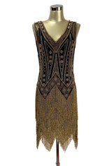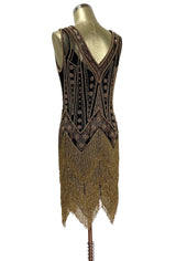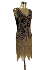 Vintage 1920s Art Deco Beaded Layered Fringe Gown - The De Luxe - Black Gold