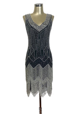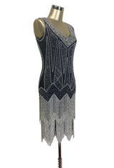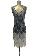 1920's Flapper Fringe Gatsby Party Dress - The Zenith - Silver on Black
