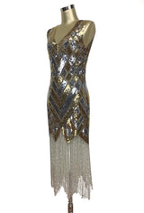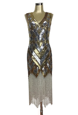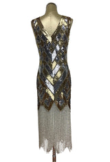 1920s Style Art Deco Flapper Fringe Party Dress - La Bande - Silver Gold