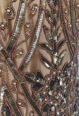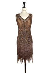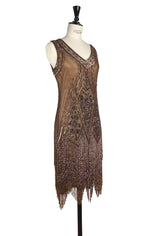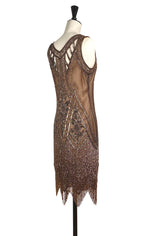 1920's Vintage Flapper Beaded Fringe Gatsby Party Gown - Cut Out Back - The Icon - Cocoa Shimmer