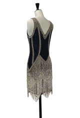 The Louise Brooks Celebrity Beaded Mesh 1920's Gown - Black Metallic