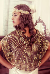 1920s Beaded Silk Bow Flapper Capelet - The Garbo - Gold on Jet