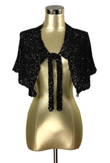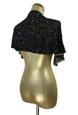 The Vintage Hollywood Luxe Cluster Tie 1930's Evening Capelet - Black Jet