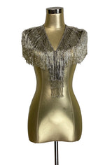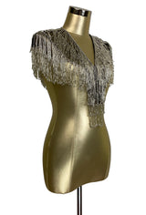 The Zelda 1920's Flapper Fringe Capelet - Silver on Jet