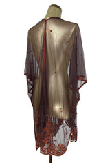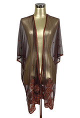 The Vintage Romance Embroidered Pearl Mesh Evening Wrap - Mocha Brown