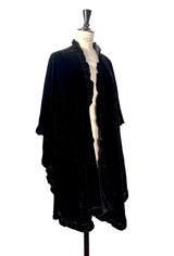 Victorian Velvet Ruffle Open Front Evening Wrap - Jet Black