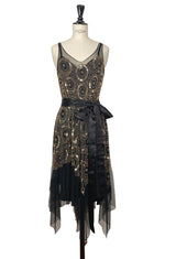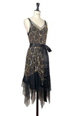1920's Beaded Handkerchief Gatsby Dress - The Deco Dot - Black Gold