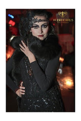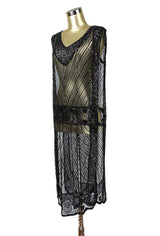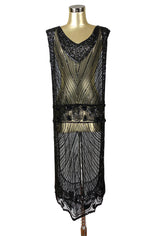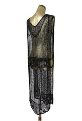 1920's Beaded Vintage Deco Tabard Panel Gown - The Modernist - Kohl Black