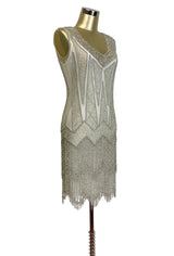 1920's Flapper Fringe Gatsby Party Dress - The Zenith - Silver Cloud