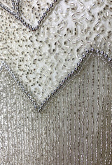 Constructed on the highest quality georgette, our Zenith Gown has two decadent layers of fringe on the skirt. All of the fringe is individually attached to create beautiful draping and movement. A linear pattern on the bodice helps create a quintessential Art Deco garment.