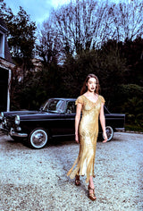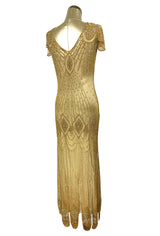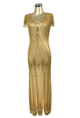 1920's Gatsby Flutter Sleeve Beaded Party Dress - The Starlet - Full-Length - Butterscotch Gold