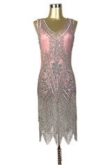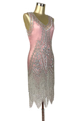 1920s Style Gatsby Beaded Fringe Party Dress - The Icon - Antique Rose