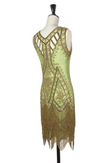 1920's Vintage Flapper Beaded Fringe Gatsby Gown - The Icon - Absinthe Green