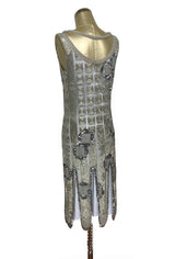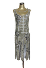 1920's Vintage Flapper Beaded Fringe Shoulder Drape Gatsby Gown - The Futurist - Silver
