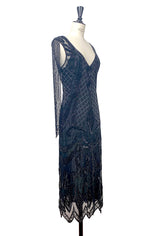 1930's Hollywood Beaded Party Dance Gown - The Monaco - Black Jet