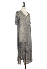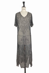 Antique Beaded Edwardian Gown - The Astor - Black with Antique Silver