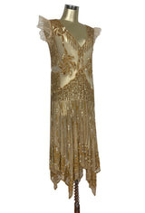 The 1920s Hollywood Regency Handkerchief Vintage Gown - Gold