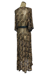 The Femme Fatale 1920s Glamour Vintage Wrap Dress - Antique Gold on Kohl