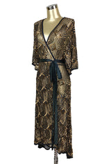 Inspired by the decadent dressing gowns of the 1930s and the iconic wrap silhouette of the 1970s, the Femme Fatale is one of our most intricately beaded designs. Hand-applied sequins cover the gown in a striking Art Deco pattern for a truly luminous effect.
