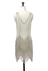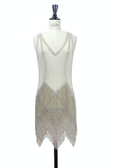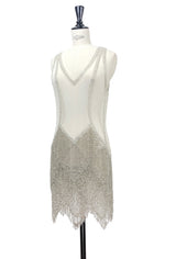 The Louise Brooks Celebrity Beaded Mesh 1920's Gown - Silver Cloud