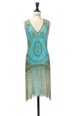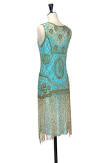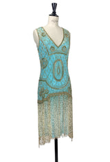 1920s Gatsby Flapper Beaded Fringe Party Dress - The Lulu - Gold on Turquoise