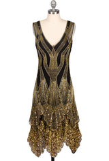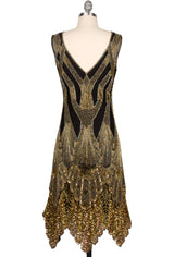 The Paris 1920's Handkerchief Scallop Panel Art Deco Gown - Black Gold