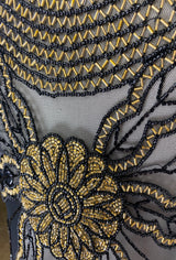 Constructed on a luxurious rayon mesh, the classic Art Deco design is generously accented with glass amber and jet handbeading. A long beaded fringe completes the look.