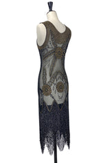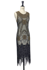 Vintage Gatsby 20s Beaded Mesh Fringe Party Dress - The Lindy - Black Amber