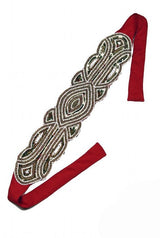 The Patou 1920s Silk Flapper Bandeau - Gold on Scarlet
