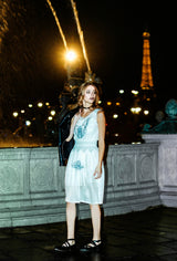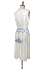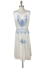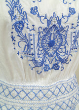 1920's Vintage Embroidered Silk Voile Provence Dress - French Blue