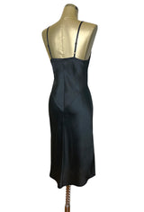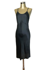 1930's Style Panel Bias Satin Slip Dress - Black