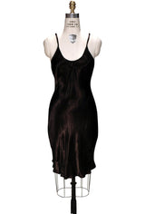 1930's Style Satin Bias Gatsby Glamour Slip Dress - Black
