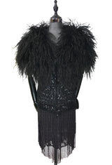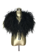 Ultra Ostrich Hollywood Glamour 1930s Vintage Style Harlow Wrap - Ebony Black