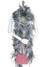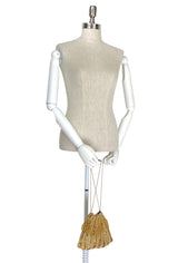 The Mignon Pochette features a crochet foundation embellished with a Deco beaded design and looped fringe. Fully lined in satin with silk corded straps. Beaded accents on the straps for added heirloom quality.
