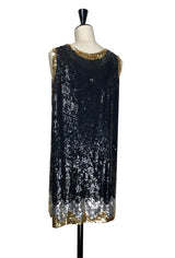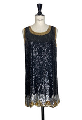 1920s Beaded Sequin Baby Doll Dress - Deco Shimmer - Black Silver Gold