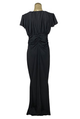 1930's Style Bias Ruched Flutter Sleeve Full-Length Rhinestone Hayworth Gown - Black