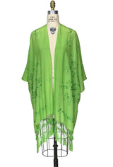The Madame Butterfly Embroidered Silk Fringe 20s Evening Wrap - French Lime