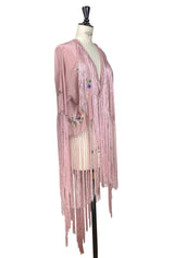 The 1920's Silk Embroidered Piano Shawl Tuxedo Jacket - Antique Rose