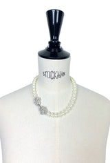 Vintage Hollywood Double Buckle Camellia Pearl Necklace - Silver