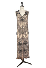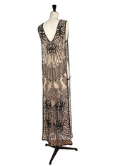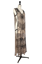 1920's Art Deco Panel Tabard Gown - The Vienna Nouveau - Black on Champagne